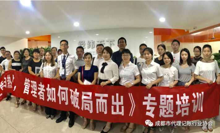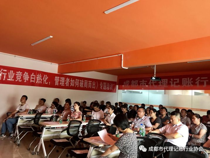 2018年7月26号上午9:30,成都市代理记账行业协会在成都市高新区理想中心1栋405-408开展关于《行业竞争白热化,管理者如何破局而出》为期一天的专题培训。